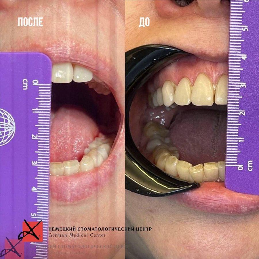 Начали лечение на ортотике. В результате лечения мы получили открывание рта до максимально возможных физиологических размеров.