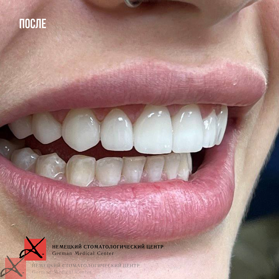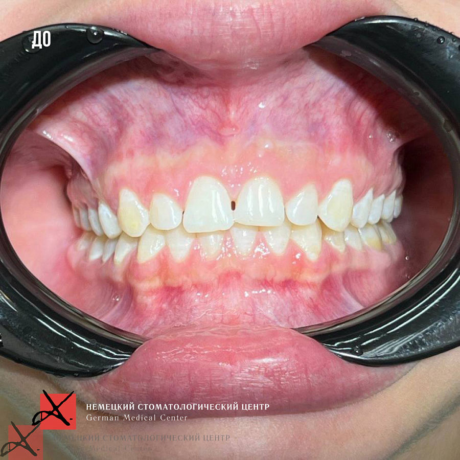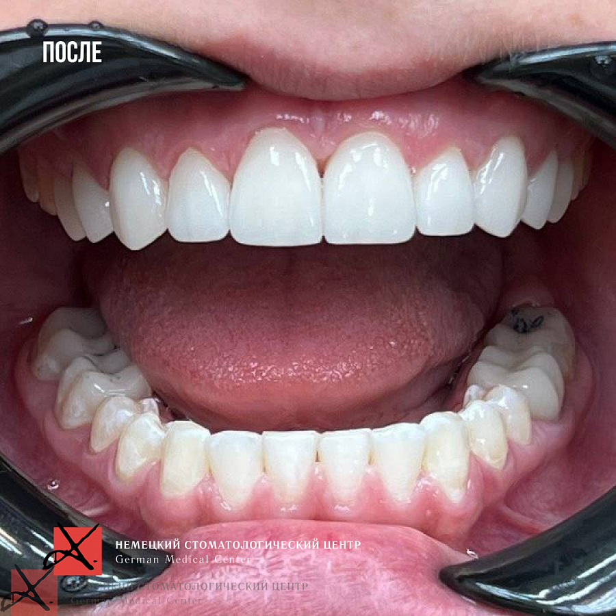 - Провели ортодонтическое перемещение зубов в правильной проекции.