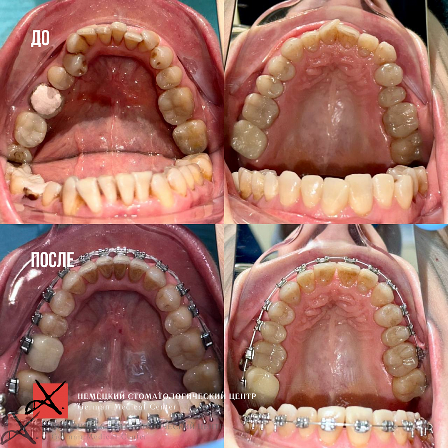 4. Ортодонтическое лечение на брекетах с применением мини-имплантатов.