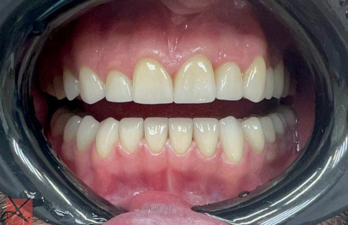 Ортопед Мискевич М.И. завершила лечение, восстановив эстетику и жевательную функцию с помощью современных ортопедических конструкций.