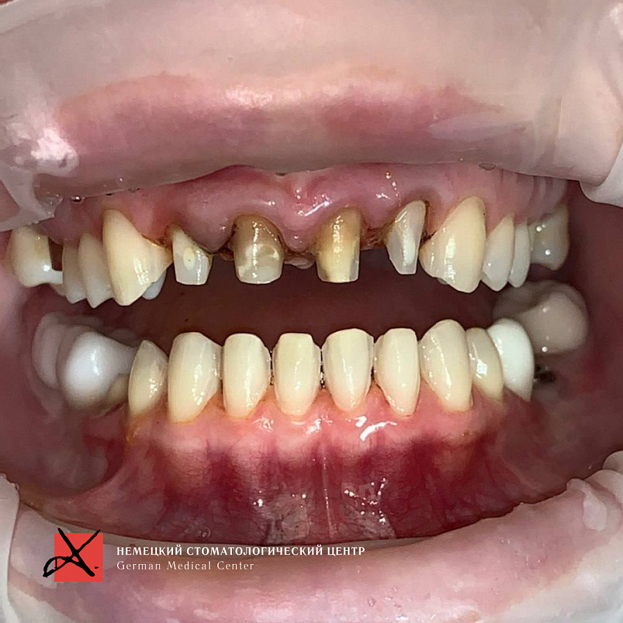 Пациентка обратилась в первую очередь из-за эстетически некрасивого вида зубов.