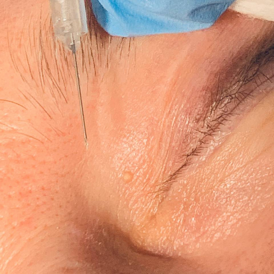 Пациентка обратилась с образованием на веке, которое причиняло небольшой дискомфорт, но больше смущал эстетический момент.