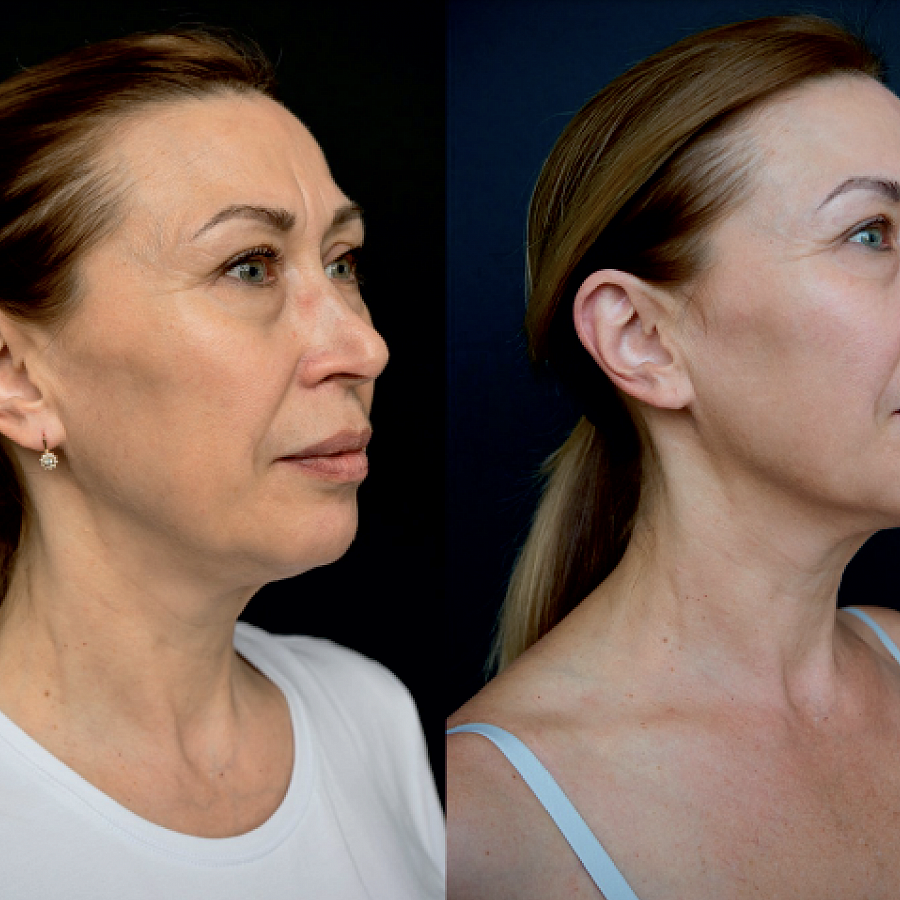 Результат: укрепление овала лица, уменьшение глубины морщин, уменьшение второго подбородка, улучшение цвета лица и текстуры кожи.