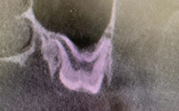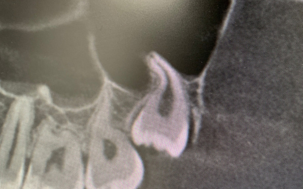 Диагностика показала трещину в корне зуба. Сохранить или вылечить зуб невозможно, поэтому было рекомендовано удаление зуба с последующей имплантацией.