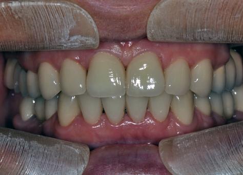 После функционального анализа проведено реконструктивное лечение металлокерамическими конструкциями, в том числе опирающимися и на дентальные имплантаты.
