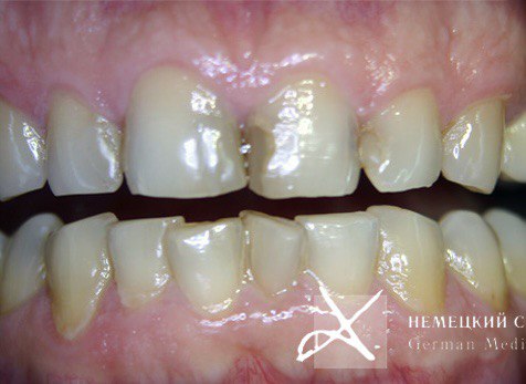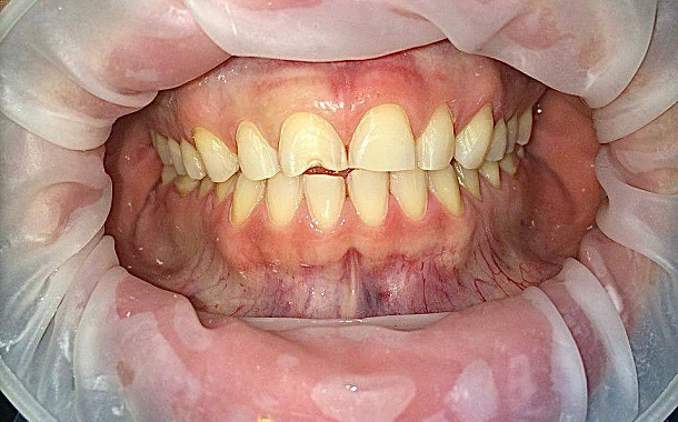 Пациент обратился с жалобами на некрасивый внешний вид верхних центральных передних зубов.
