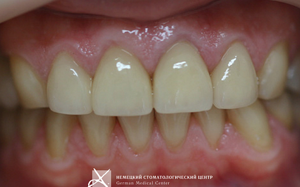 Мы предложили установку виниров на фронтальные зубы.