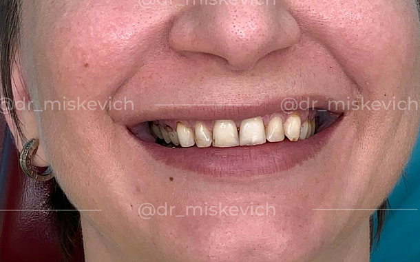 Пациент обратился с рядом проблем, основная из которых - нарушение функциональной работы челюсти. Также его не устраивал эстетический вид зубов.